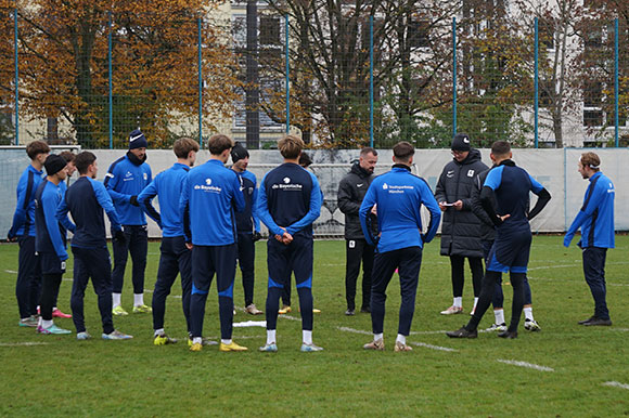 Trainer Felix Hirschnagl macht nochmals klar, was er von seinem Team erwartet. Foto: Joachim Mentel